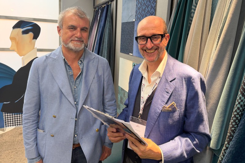 On the left is RAFFAELE FABRIZIO owner of Dedar, based in Milan, Italy and one of the biggest EU Textile Editors, with Luca Ferrari, MD of Dinole, Nole, Italy.